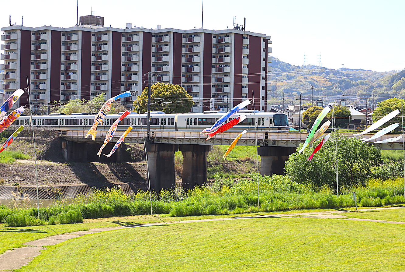 大和川に色とりどりの鯉のぼりが舞う