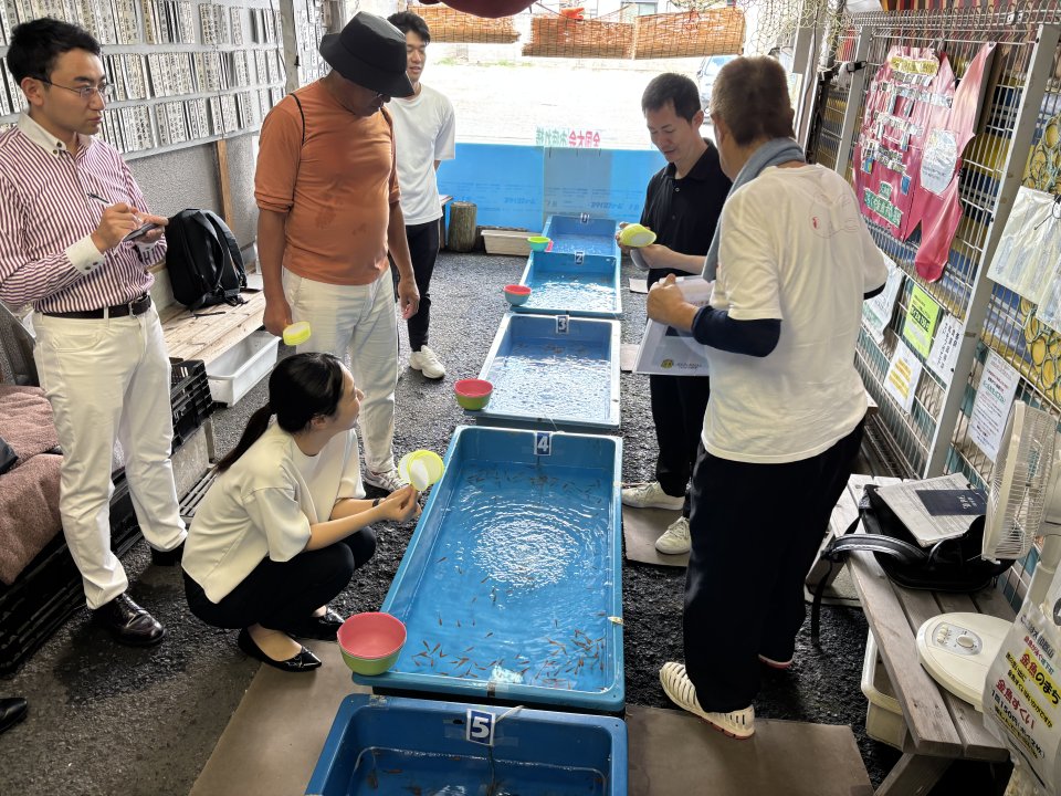 藍染めのお土産づくりや、金魚のまちならではの金魚すくいを楽しみ、古き町並みを散策。