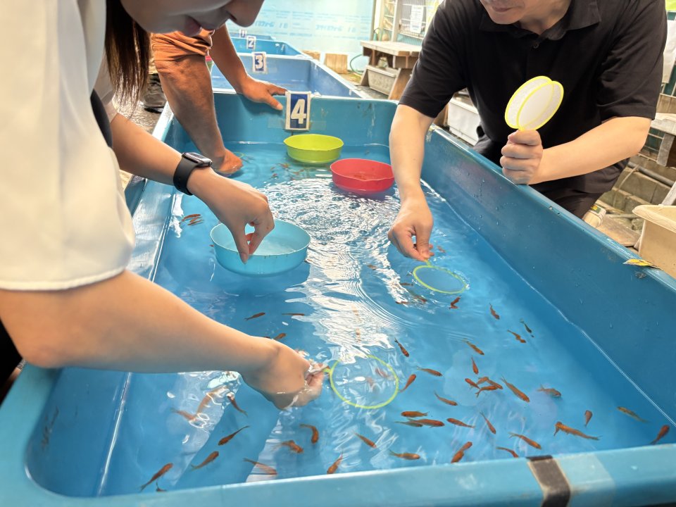 藍染めのお土産づくりや、金魚のまちならではの金魚すくいを楽しみ、古き町並みを散策。